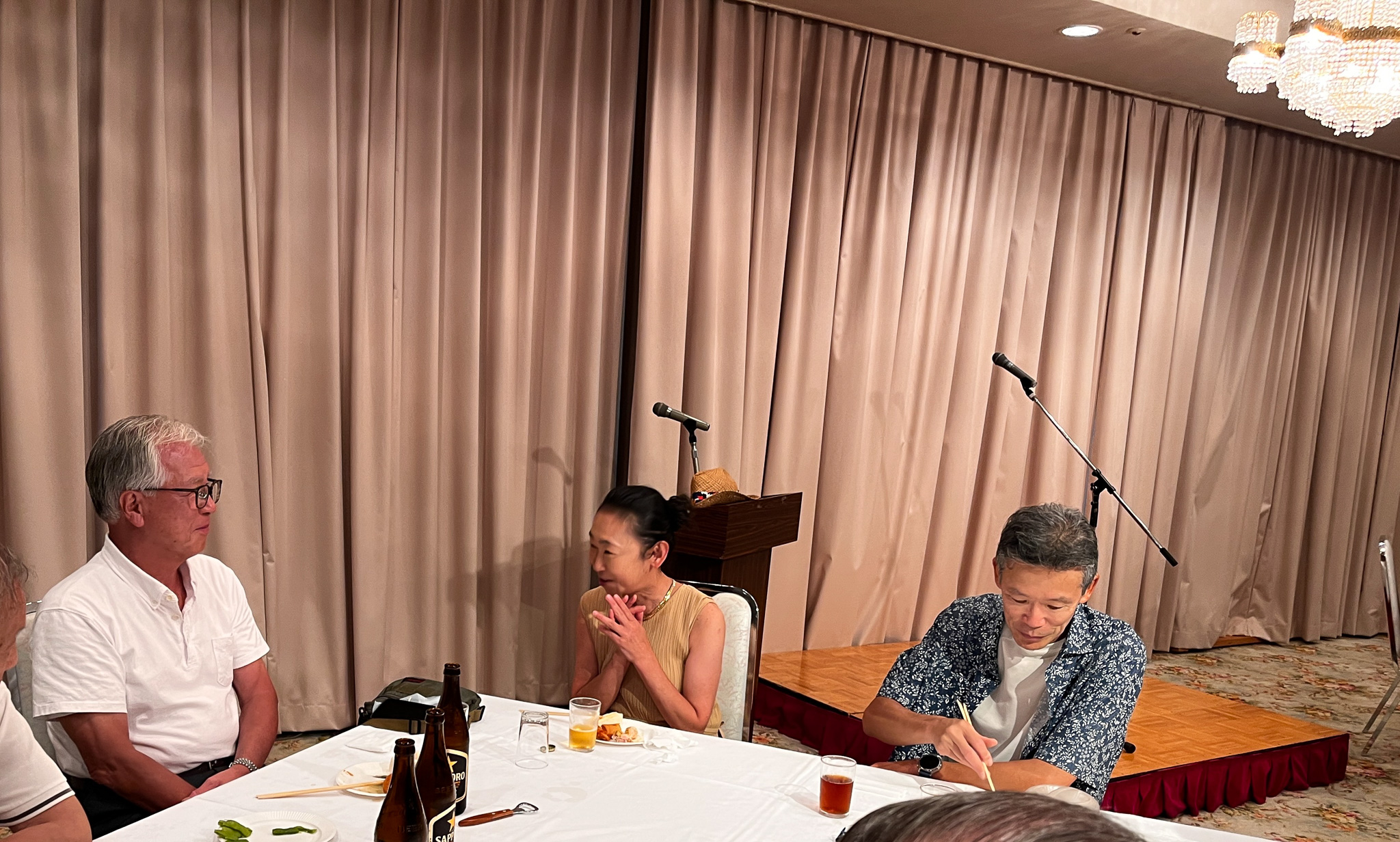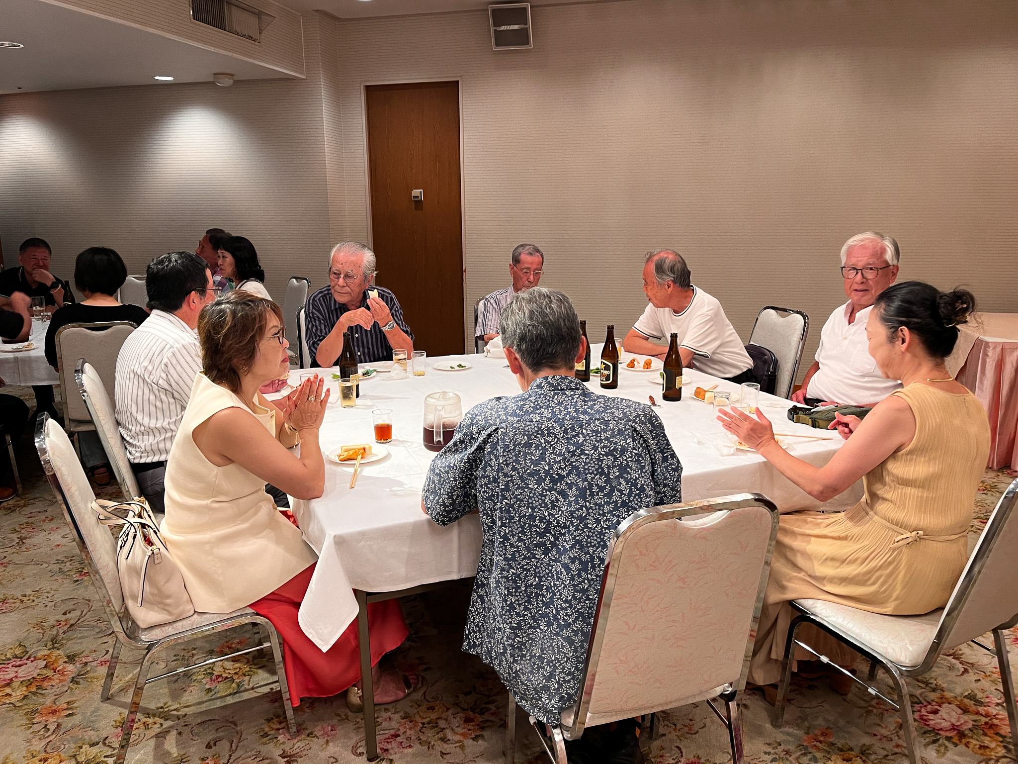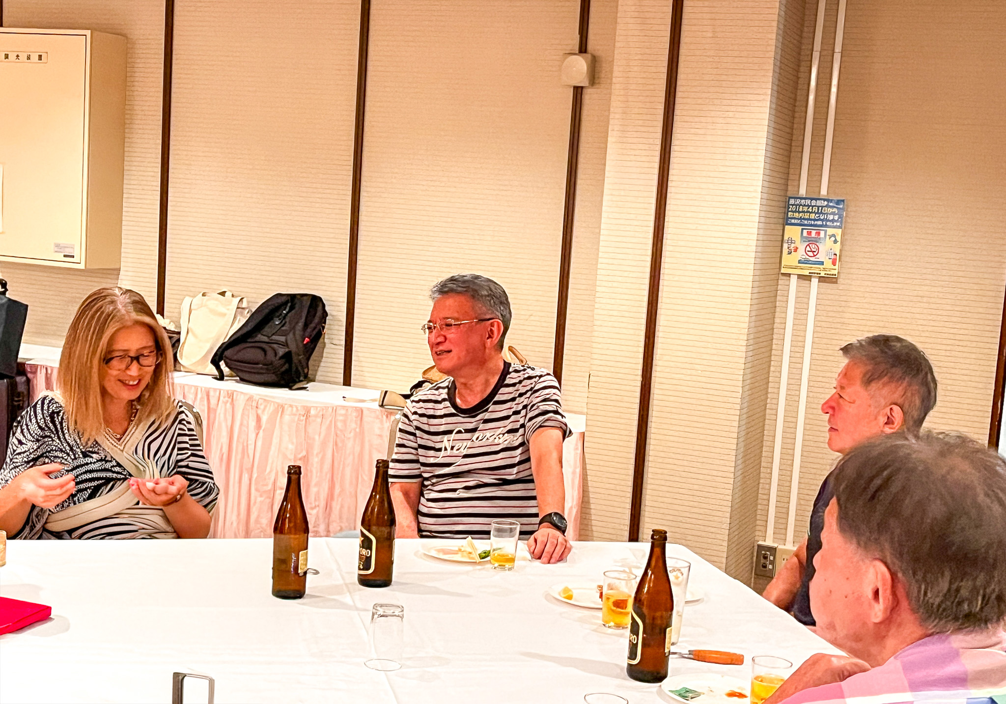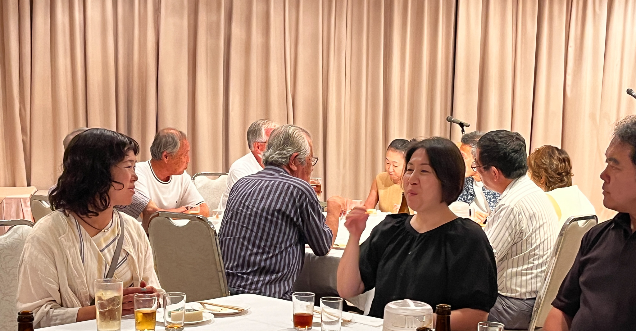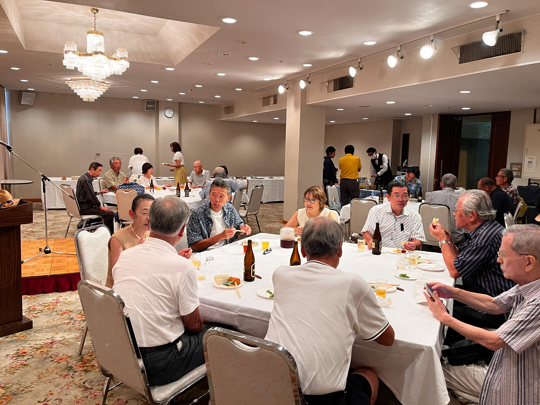 おもしろ講座終了後の懇親会では、玉八師匠を囲んでさらに賑やかに! 舞台では聞けなかった裏話や質問も飛び出し、会員同士も笑顔で交流を深めました。