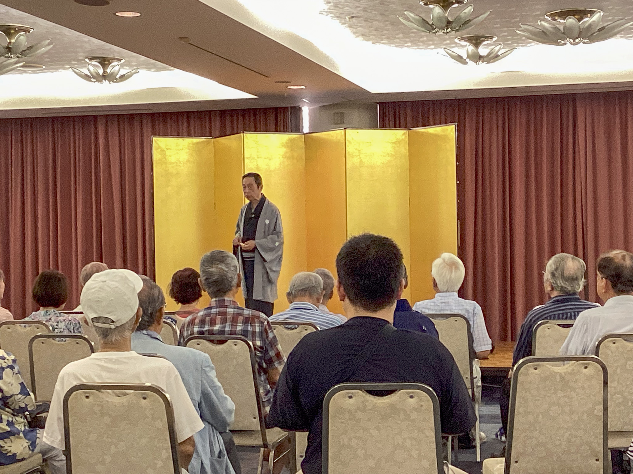 当日は真夏の猛暑日。けれど会場に集まった約50名は、暑さを忘れて大笑い!艶っぽくも粋な芸の数々に引き込まれ、拍手と笑い声が絶えませんでした。