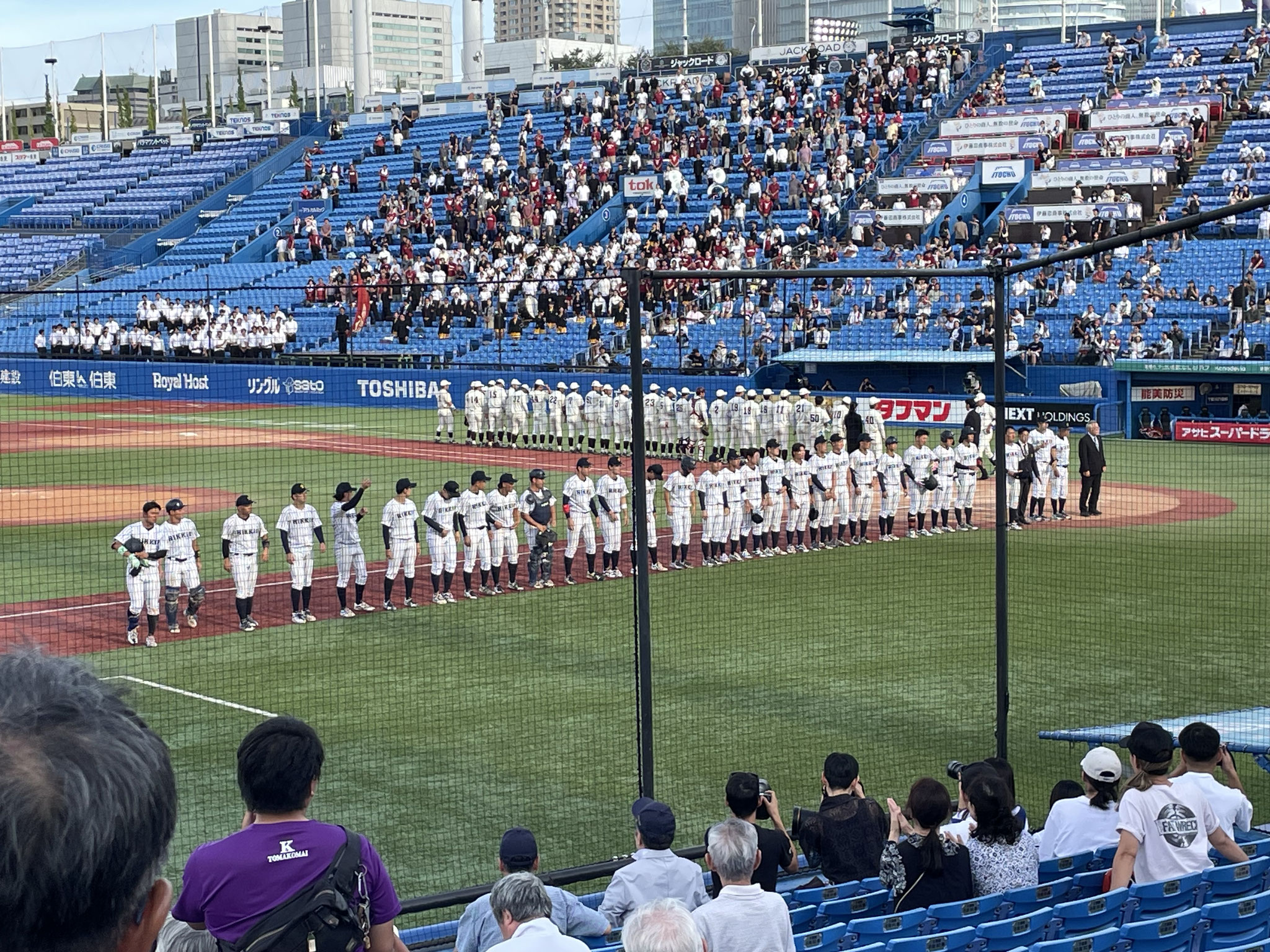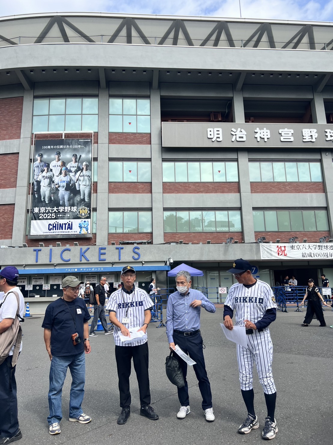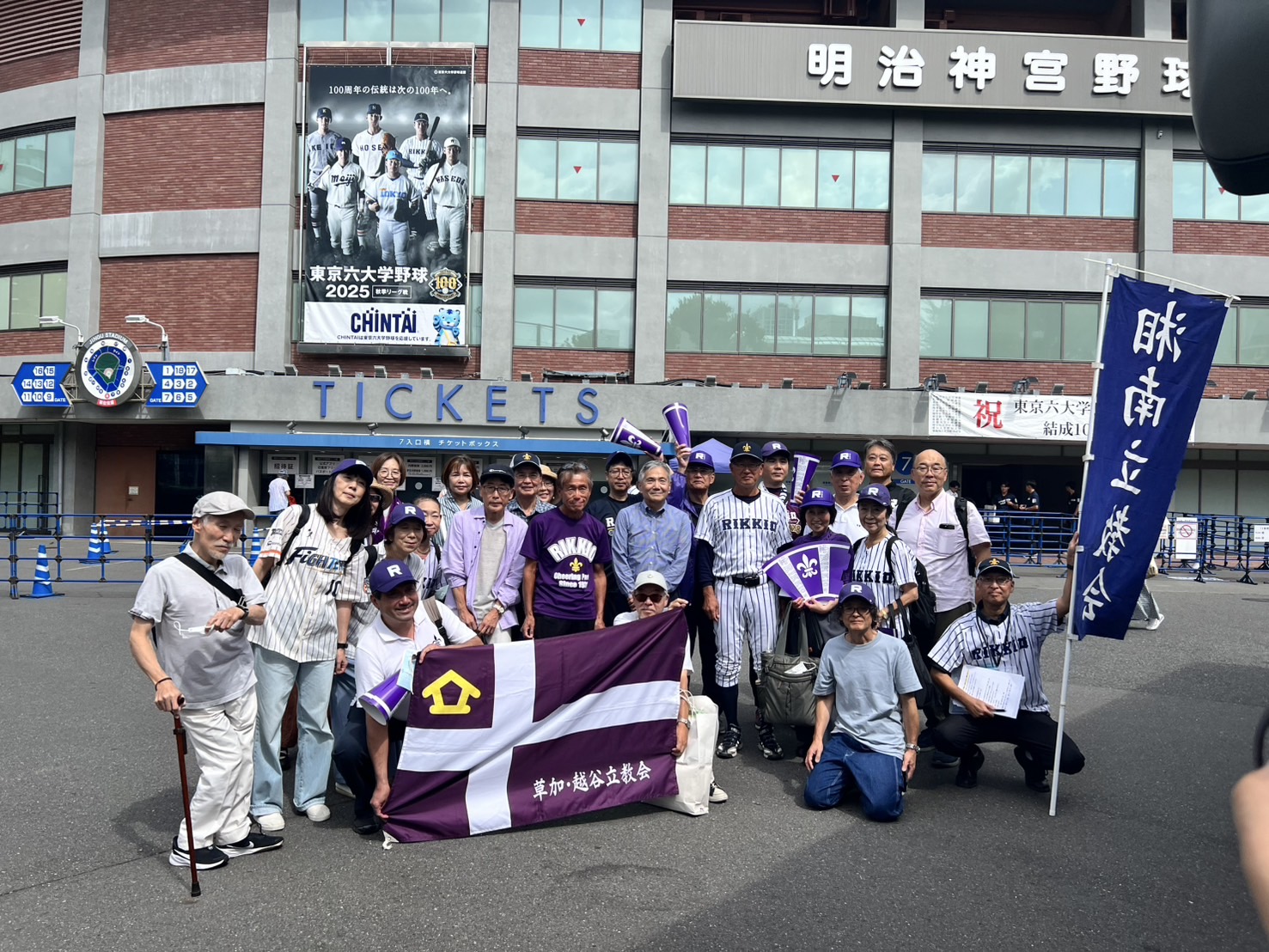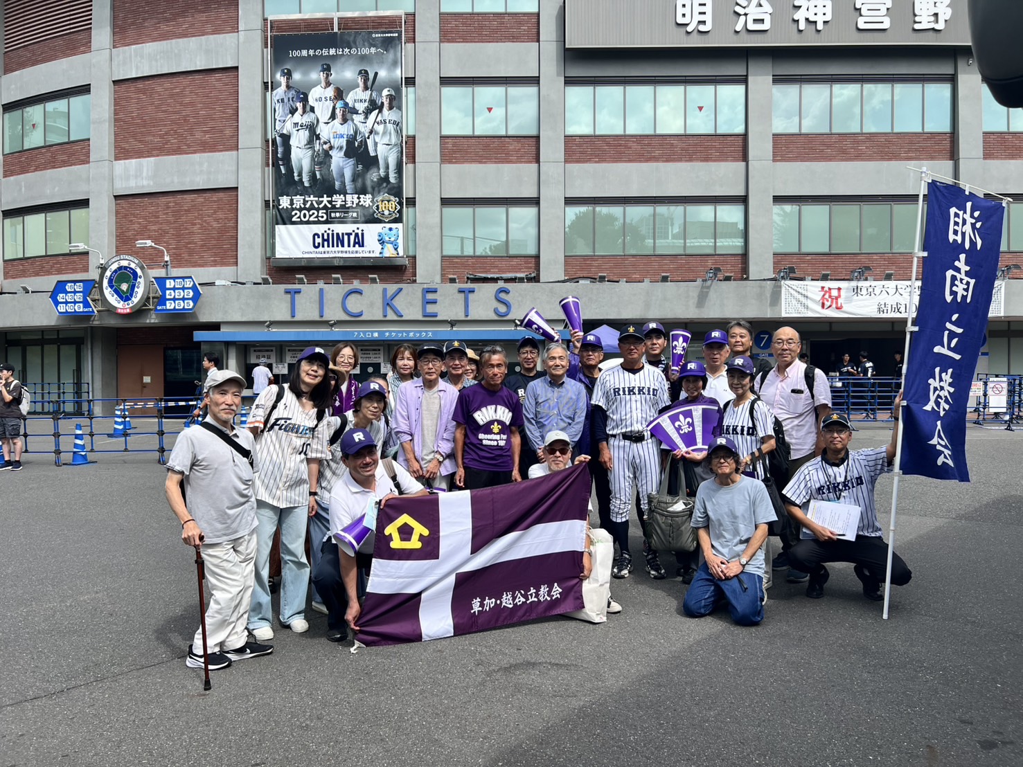 この日は対早稲田2回戦。前日の先勝の流れに乗って 総勢30名の応援メンバーが現地明治神宮球場に集合。