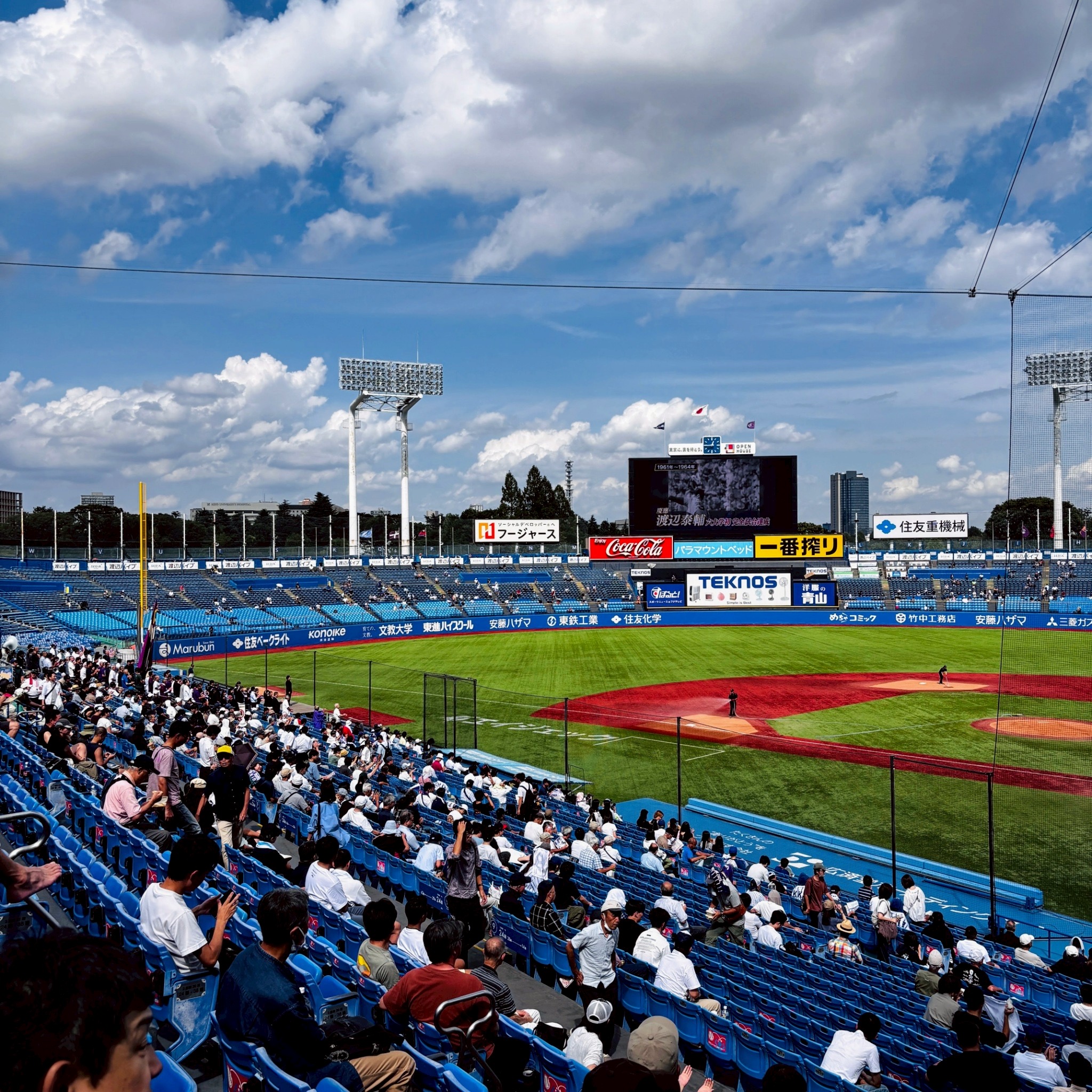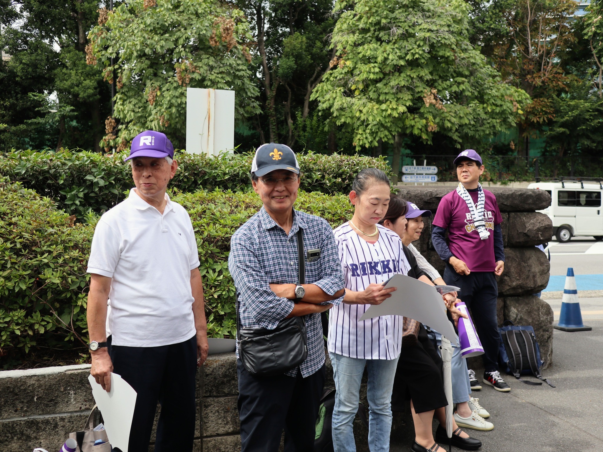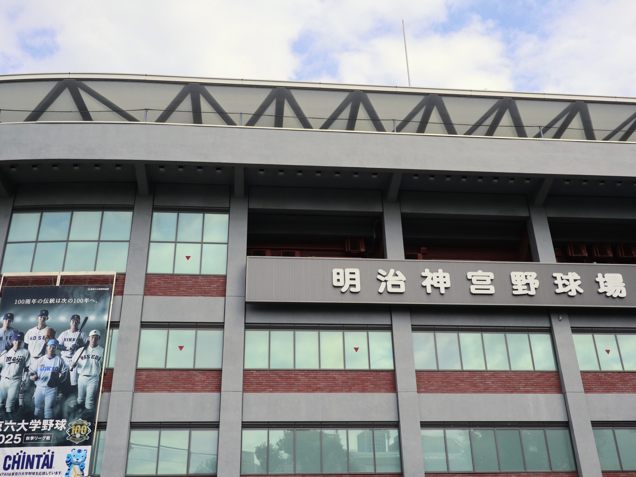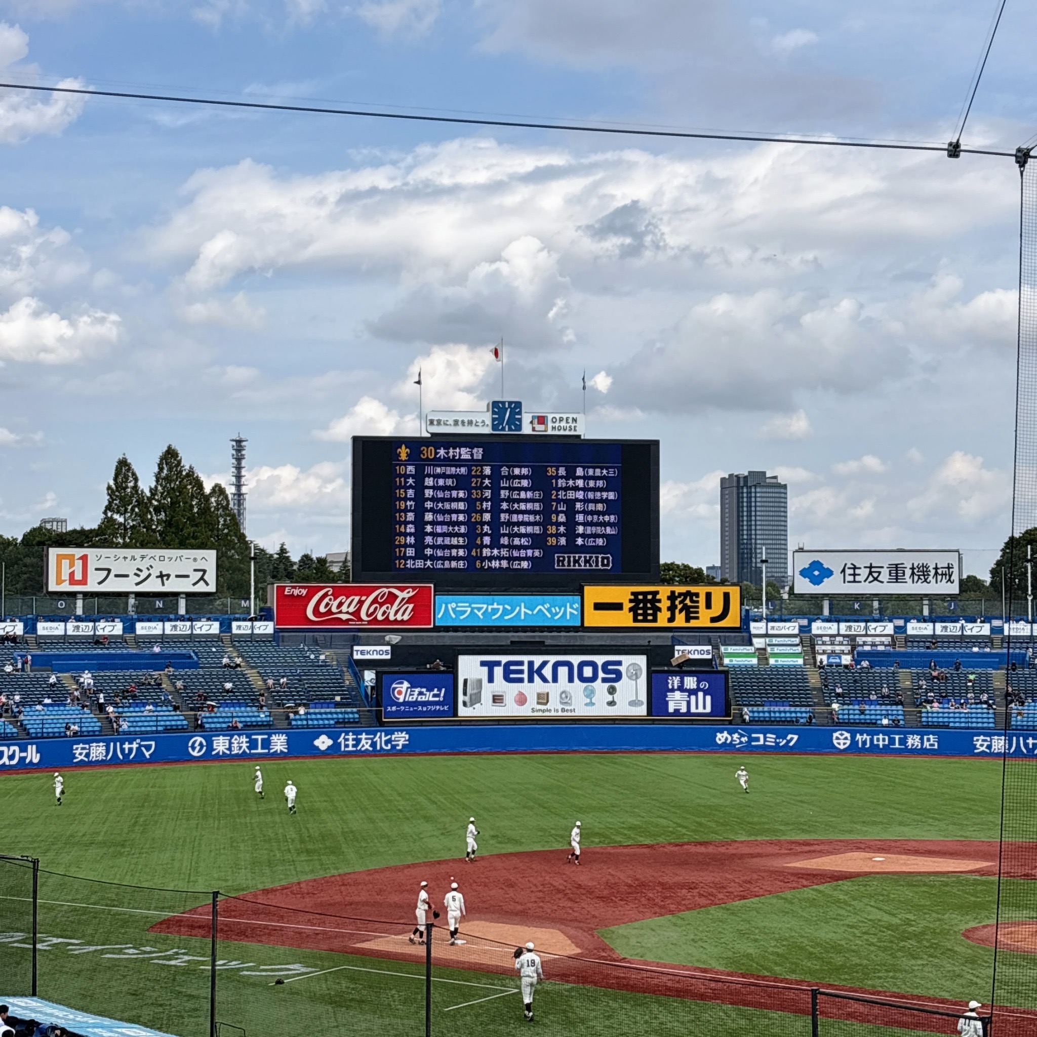 この日は対早稲田2回戦。前日の先勝の流れに乗って 総勢30名の応援メンバーが現地明治神宮球場に集合。
