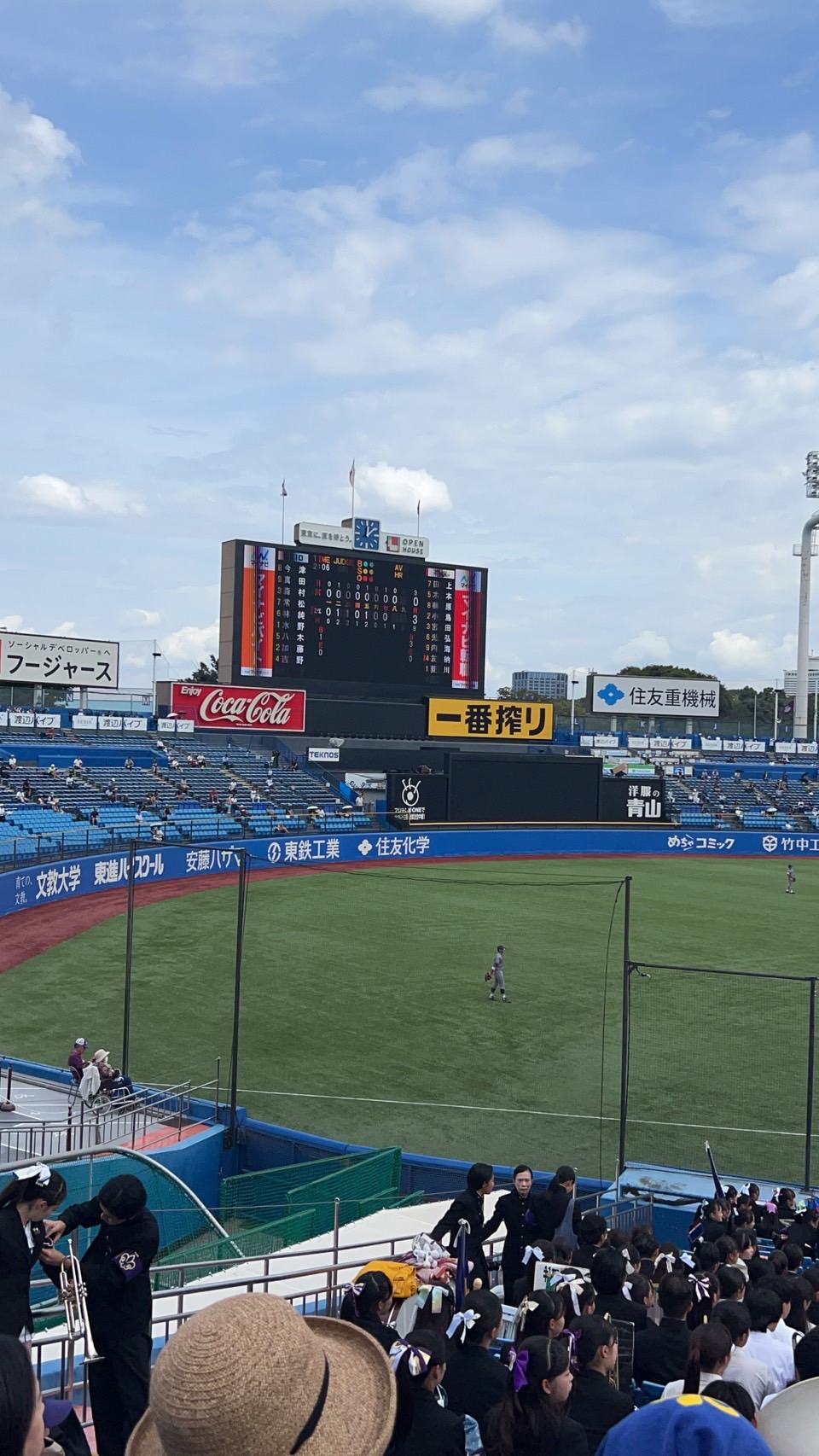 ところで試合は前半は点の取り合い、5回までは「立教4-6早稲田」、立教の重ねる得点に応援席は大歓声!